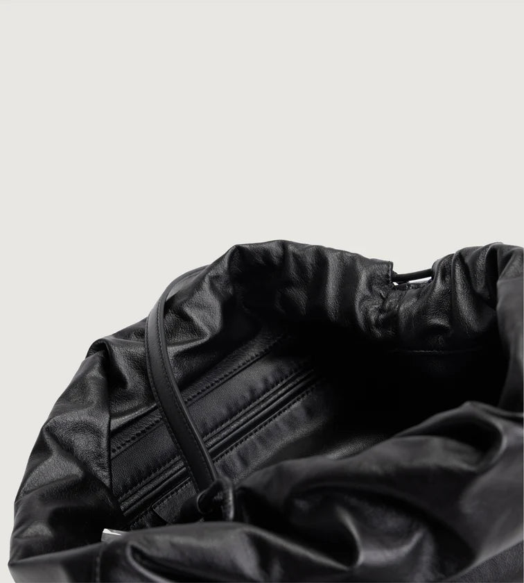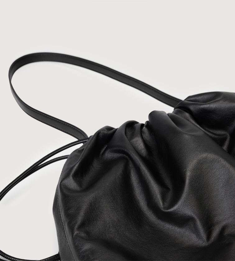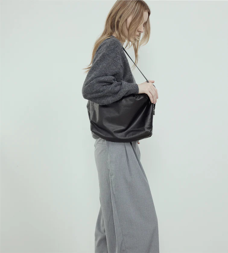 A cloud-like hobo bag defined by softness and ease, elevated through pure cut and leather. Crafted in supple calfskin with fluid crescent lines, its lambskin interior conveys a discreet sense of luxury—balancing effortlessness with refinement.