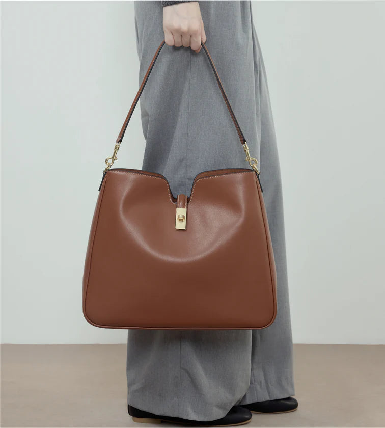 Inspired by Parisian architectural silhouettes, this hobo bag is crafted in supple, semi-matte calfskin with a buttery-soft touch. Its softened lines evoke a sense of effortless French charm, blending vintage character with modern lightness. Versatile enough to move easily between everyday wear and formal occasions.